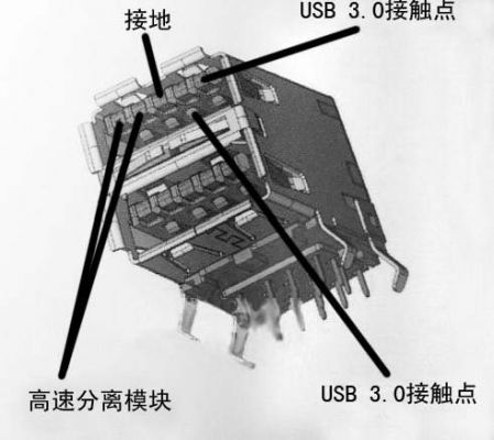 與USB 1.1升級到USB 2.0一樣,USB 3.0仍然采用USB 2.0相同的架構(gòu),向下兼容先前的即插即用USB版本,不管是USB 2.0還是USB 1.1設(shè)備,都能夠與USB 3.0接口的設(shè)備相兼容。從接口結(jié)構(gòu)來看,USB 2.0線纜使用了4條線的封裝設(shè)計,所以USB 2.0接口使用了4個金屬觸點,它們分別為+5V取電、數(shù)據(jù)-、數(shù)據(jù)+、GND接地。然而USB 3.0并非廣播總線,它在包頭中采用發(fā)送列表區(qū)段來進(jìn)行發(fā)包,上行接口提供分散式的USB 3.0互聯(lián),下行接口支持USB 2.0設(shè)備,從而用簡單的方法實現(xiàn)高速傳輸和兼容性并舉的雙重好處。