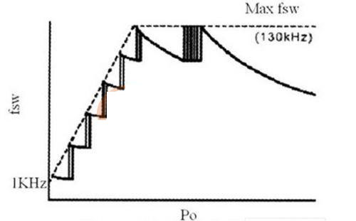 降低開(kāi)關(guān)電源功耗的主要途徑是降低開(kāi)關(guān)損耗和控制電路功耗。減少控制電路功耗可通過(guò)選擇功耗低、功能強(qiáng)、所需外部元件少的控制芯片及簡(jiǎn)化外部控制電路來(lái)實(shí)現(xiàn)。這里主要討論降低開(kāi)關(guān)損耗的措施。許多電子產(chǎn)品在使用中常處于輕載或待機(jī)狀態(tài),而開(kāi)關(guān)電源*率開(kāi)關(guān)管的開(kāi)關(guān)頻率都很高,當(dāng)開(kāi)關(guān)電源工作在輕載或待機(jī)狀態(tài)下時(shí),開(kāi)關(guān)損耗成為主要損耗,相對(duì)損耗大大增加,效率降低。降低輕載損耗的有效方法是在輕載狀態(tài)下降低開(kāi)關(guān)電源的開(kāi)關(guān)頻率,從而使輕載效率保持與滿(mǎn)載時(shí)相同。圖1中,隔離變換控制電路采用準(zhǔn)諧振電源控制器FA5531P及外圍元件構(gòu)成。FA5531P的開(kāi)關(guān)頻率不是由他激振蕩器決定的固定開(kāi)關(guān)頻率,而是由自激振蕩決定。芯片在正常負(fù)載時(shí)保持固定頻率的準(zhǔn)諧振開(kāi)關(guān)狀態(tài),輕載時(shí)自動(dòng)降低開(kāi)關(guān)頻率以減少空載損耗,最低開(kāi)關(guān)頻率可降至1KHz,F(xiàn)A5531P開(kāi)關(guān)頻率與輸出功率關(guān)系如圖3所示。FA5531P的另一個(gè)特點(diǎn)是具有內(nèi)部啟動(dòng)電路,從而也降低了待機(jī)功耗。FA5531P自身功耗很低,工作電流僅1.5mA,集成度高,只需極少的外部元件。