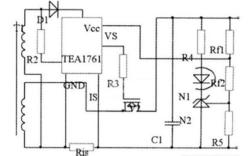 采用TEAl761T的同步整流電路如圖6所示。同步信號(hào)SRSENSE直接取自高頻變壓器次級(jí),R3是輸出電流取樣電阻,通過(guò)選擇合適的R3的阻值,可控制最大輸出電流。TEA1761T具有欠電壓鎖定和啟動(dòng)功能,D2為T(mén)EA1761T提供電源,同時(shí)檢測(cè)輸出電壓,當(dāng)Vcc引腳電壓高于8.6V,TEA1761T激活同步整流電路和輸出電壓與輸出電流檢測(cè)電路。當(dāng)電壓低于8.1v時(shí),則進(jìn)入欠電壓鎖定狀態(tài),驅(qū)動(dòng)輸出保持低電平,光耦反饋輸出被封鎖。