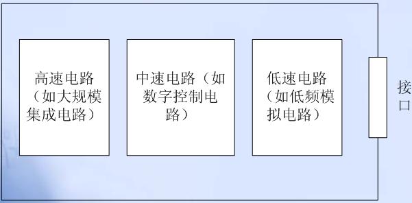 2.多種模塊電路在同一PCB上放置時,數(shù)字電路與模擬電路、高速與低速電路應(yīng)分開布局,以避免數(shù)字電路、模擬電路、高速電路以及低速電路之間的互相干擾。另外,當(dāng)線路板上同時存在高、中、低速電路時,為了避免高頻電路噪聲通過接口向外輻射,應(yīng)該遵從圖7中的布局原則。