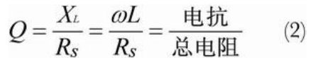 我們將電感線圈電抗(XL)與總電阻(Rs)之比稱為品質(zhì)因素Q,參見公式(2)。品質(zhì)因素被定義為電感器的品質(zhì)參數(shù)。損耗越高,電感器作為儲(chǔ)能元件的品質(zhì)就越低。