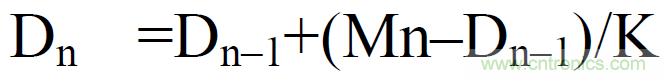 選擇指數(shù)平均法,用戶可設定衰減常數(shù)對電壓或電流有效值、有功功率的瞬時值(采樣數(shù)據(jù))進行指數(shù)平均,去除被測量的高頻成分。其中衰減常數(shù)可以手動設置,衰減常數(shù)設置值越大測量值越穩(wěn)定,對輸入變化的響應速度也就越慢,也就是說測量延遲會相應變長。該平均法常用于信號中存在高頻信號,通過設定衰減常數(shù)減小高頻信號對數(shù)據(jù)的干擾,公式如下: