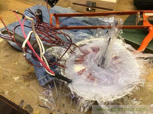 所以,這次我也想如法炮制。但是這次嗡嗡聲要大得多(我猜是因為次級繞組太松散),我決定把整個環(huán)芯都灌封好。但是,這可要用不少昂貴的環(huán)氧樹脂!也許用一些硅膠填隙劑來填充也可以起到同樣的效果。