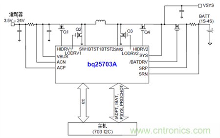 由于C型USB端口是通用的,且具有很高的功率傳輸能力,是適合此類應(yīng)用的理想選擇。為了兼容具有不同電壓和功率電平的電源,諸如無人機這樣的多元電池組系統(tǒng)很有必要使用降壓升壓充電器。在飛行間隔期間,用戶能夠快速而安全地對電池進行充電也是至關(guān)重要的。bq25703A和bq25700A支持高達(dá)6.35A的充電電流,并具有廣泛的保護功能,包括有助于從各種適配器獲得最大功率的輸入電流優(yōu)化(ICO)。圖1提供了bq25703A應(yīng)用圖中的附加信息。
