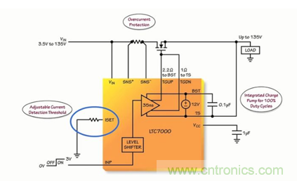 ADI 電源產(chǎn)品組的設(shè)計(jì)工程師 Mark Mullen 就上述問題為大家分享了一個(gè)基于LCT7000受保護(hù)的高壓側(cè)驅(qū)動(dòng)器解決方案。
