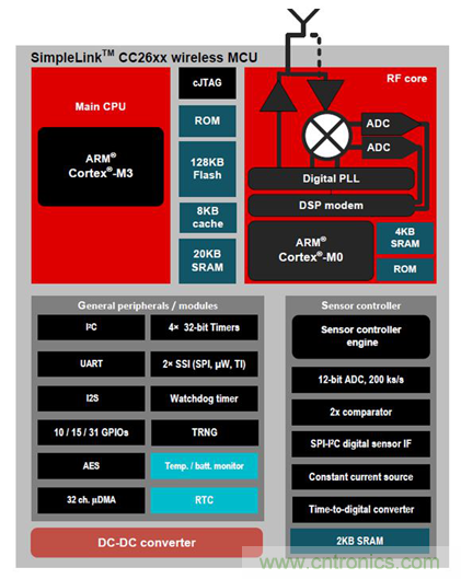 MCU帶集成藍(lán)牙®低功耗無線電:采用TI的SimpleLink超低功耗無線MCU平臺(tái),具有低功耗無線電和MCU組合使傳感器終端節(jié)點(diǎn)的電池使用壽命延長。而且,CC2650設(shè)備是一個(gè)多標(biāo)準(zhǔn)設(shè)備,針對(duì)藍(lán)牙、ZigBee®、6LoWPAN和ZigBeeRF4CE遙控器應(yīng)用。在這個(gè)TI設(shè)計(jì)中,藍(lán)牙是可選擇的協(xié)議,但是硬件也可以與其他協(xié)議一起工作。