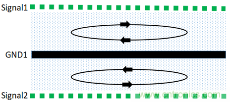 磁通對消的本質就是信號回流路徑的控制,具體示意圖如下: