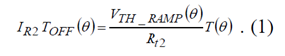 在功率開關管關斷期間,CR1電容的充電電流是IR1恒流,CR1電容上的電壓VRAMP (θ)線性升高: