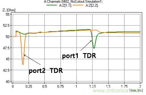 圖5圖6對比,發(fā)現(xiàn)未處理之前阻抗的跳躍很明顯,隔層處理后的阻抗改善很多,幾乎沒有任何階躍與不連續(xù)。