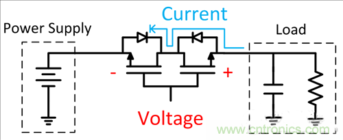 為了在FET關(guān)閉時阻斷兩個方向上的電流,你還可以將FET背靠背連接。與二極管解決方案相比,電源到負(fù)載的壓降更低,不過這種實(shí)現(xiàn)方式占用了大量的電路板面積。圖3顯示了用來阻斷反向電流的背靠背FET示例。