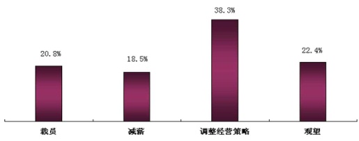 此項(xiàng)調(diào)查結(jié)果出乎我們的意料,選擇裁員的企業(yè)已經(jīng)占到了20.8%,但是多數(shù)企業(yè)還是選擇了調(diào)整經(jīng)營(yíng)策略。我們特別希望有遠(yuǎn)見(jiàn)的企業(yè)不要把裁員作為應(yīng)對(duì)危機(jī)的主要措施,這也不符合我們“和諧社會(huì)”的主旋律。只要能正確的面對(duì),認(rèn)真分析企業(yè)的優(yōu)勢(shì),研究市場(chǎng)的動(dòng)向,合理配置企業(yè)資源,充分發(fā)揮員工的潛力,調(diào)動(dòng)員工的積極性,企業(yè)一定會(huì)有新的轉(zhuǎn)機(jī)。企業(yè)如能和員工共克時(shí)艱,就會(huì)加深員工對(duì)企業(yè)的感情,這種情感會(huì)轉(zhuǎn)化為企業(yè)的一種優(yōu)勢(shì)資源。(見(jiàn)圖表四)