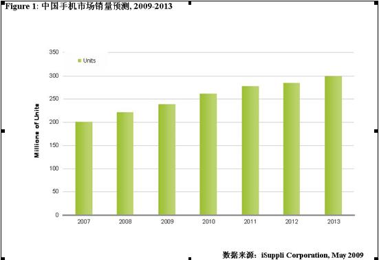 - 預計中國手機市場2009年的銷量為兩億三千八百萬臺,較去年成長7.8%