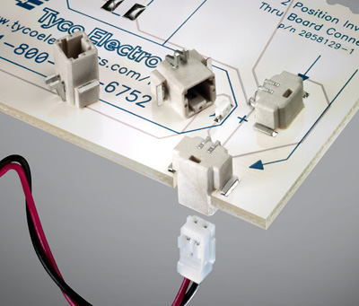 泰科電子此次推出的全新SMT通板連接器具備2位至6位并使用表面貼裝技術(shù),運用時穿過電路板使接口轉(zhuǎn)至PCB板的背面,該連接器的反向設(shè)計使得在建筑、住宅及某些商業(yè)應用上的固態(tài)LED 照明的安裝操作更為簡便。該連接器與標準型Mini CT連接器完全匹配。Mini CT連接器適合24 AWG電線,額定電流為3安培。