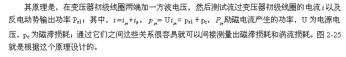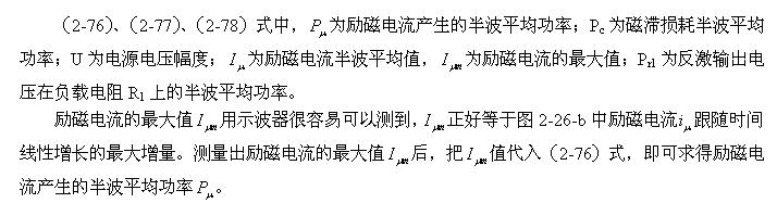 因此,(2-81)、(2-82)、(2-83)、(2-84)式最好只用于對正激式輸出的單激式開關電源變壓器進行磁滯損耗和渦流損耗功率測試,因為其初級線圈的電感相對比較大,勵磁電流比較??;如果需要對反激式輸出的單激式開關電源變壓器進行測試,最好只用于對小功率開關電源進行對比測試。