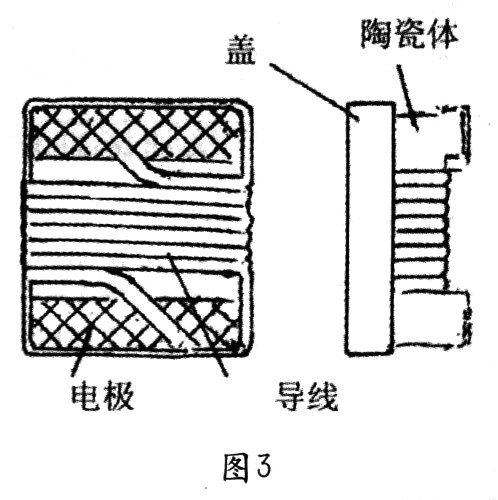 [page]還有一種片式繞線電感是采用H型陶瓷芯,經(jīng)過繞線、焊接、涂復(fù)、環(huán)氧樹脂灌封等工藝制成,見圖3,由于電極已預(yù)制在陶瓷芯體上,制造工藝更加簡單,而且可以進一步小型化。這類電感的電感量較小,但自諧振頻率高(通常為5~6GHz,最高達12.5GHz),更適合高頻使用。