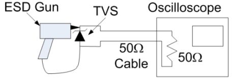 比較保護(hù)二極管鉗位電壓的最佳途徑是采用示波器來對發(fā)生ESD事件期間通過二極管的實(shí)際電壓波形進(jìn)行屏幕截圖。這可以通過圖1所示的測試設(shè)置來實(shí)現(xiàn)。[page]