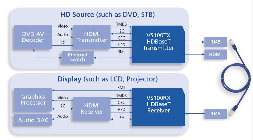 HDbaseT技術(shù)與現(xiàn)有HDMI傳輸方案配合,設(shè)計(jì)十分簡(jiǎn)單,為STB和TV廠商提供更多賣(mài)點(diǎn)