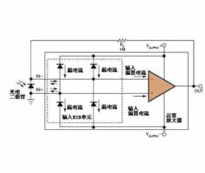 當(dāng)您研究JFET或者CMOS輸入放大器時(shí),術(shù)語“輸入偏置電流”便失去了它的意義。使用這類放大器,從放大器輸入引腳下拉或者吸取的電流實(shí)際上為輸入ESD(靜電放電)單元(請(qǐng)參見圖1)的漏電流。