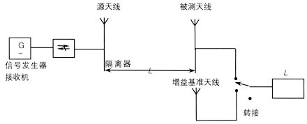 (1)增益基準(zhǔn)天線與源天線對準(zhǔn),通過轉(zhuǎn)接,使增益基準(zhǔn)天線與接收機相連接,此時接收機接收功率電平為P1(dBm)。