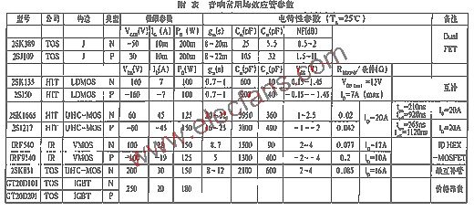 場效應(yīng)晶體管在音響數(shù)字化的今天應(yīng)用范圍越來越廣。其原理、優(yōu)點(diǎn)和使用常識在一些工具書及報(bào)刊上已有不少論述,在此不再贅述。本文通過兩個(gè)容易被發(fā)燒友特別是初學(xué)者所忽略的要點(diǎn)來說明場效應(yīng)管的合理應(yīng)用。目前,應(yīng)用于音響領(lǐng)域的場效應(yīng)管包括結(jié)型管(JFET)和絕緣柵場效應(yīng)管(MOsFET),而后者又分為LDMOS、VMOS及近年出現(xiàn)的UHC、IGBT等,并且至今仍在不斷發(fā)展與完善之中。