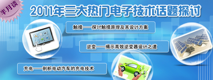 在“蘋果”和“環(huán)保”概念下,觸摸技術(shù)、逆變器技術(shù)以及新型充電技術(shù)討論將在延2011年繼續(xù)延伸。本期半月談將與大家一起探討觸摸屏在設(shè)計的時候需要注意哪些要點,如何提高光伏逆變器效率以及新型充電技術(shù)的技巧。