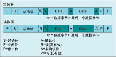I2C允許多個(gè)主器件工作在同一總線上。多個(gè)主器件可以輕松同步其時(shí)鐘,因此所有主器件均采用同一時(shí)鐘進(jìn)行傳輸。多個(gè)主器件可以通過數(shù)據(jù)仲裁檢測哪一個(gè)主器件正在使用總線,從而避免數(shù)據(jù)破壞。由于 I2C總線只有兩條導(dǎo)線,因此新從器件只需接入總線即可,而無需附加邏輯。圖4 顯示了典型的 I2C總線讀/寫操作。