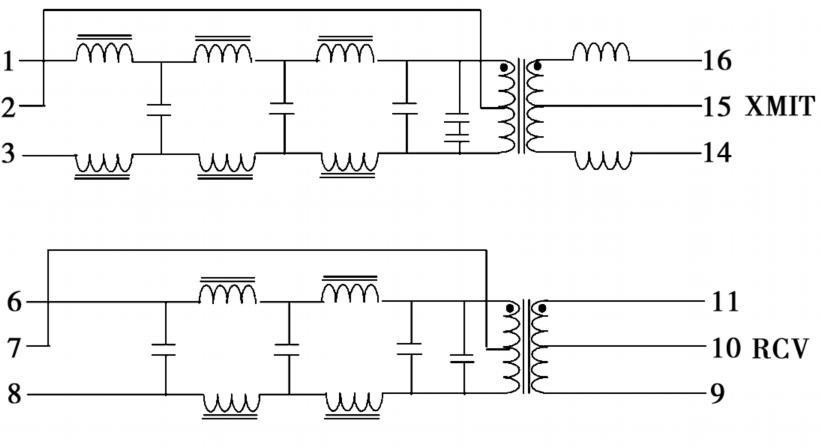 如圖3所示,本設(shè)計采用的是在通用的嵌入式微處理器$3C2440A上擴展以太網(wǎng)接口的方式。CS8900A通過總線與處理器相連,中斷與處理器外部中斷相接。S3C2440A的數(shù)據(jù)線DB[15:0]與CS8900A的數(shù)據(jù)線SD[15:0]連接,地址線AB[19:0]與CS8900A的數(shù)據(jù)線SA[19:0]連接,用來實現(xiàn)CS8900A與S3C2440A之間的數(shù)據(jù)傳輸;S3C2440A的NET_IOR引腳連接CS8900A的讀引腳nIOR,NET_IOW引腳連接CS8900A的寫引腳nIOW,用來控制CS8900A的讀寫;CS8900A與網(wǎng)絡(luò)的連接由接收信號線RXD+、RXD-和發(fā)送信號線TXD+、TXD-通過隔離變壓器FB2022與以太網(wǎng)水晶接頭RJ_45相連。隔離變壓器的主要作用是將嵌入式系統(tǒng)與外部線路相隔離,防止干擾和燒壞元器件,實現(xiàn)帶電的插拔功能。其內(nèi)部結(jié)構(gòu)圖如圖4所示。