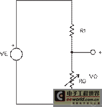 圖 1 顯示的是您如何使用一個(gè)分壓器測量電阻。VE 表示激發(fā)電壓。RG 值為: