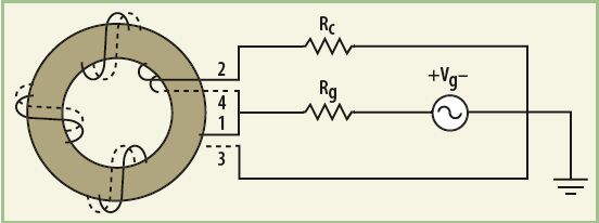 這種寬帶unun阻抗變壓器對測試電路、光接收器系統(tǒng)、帶寬帶阻抗匹配的微波電路,以及天線耦合也很有用??捎糜诟哳l電路設計及仿真的現(xiàn)代計算程序在自己的工具箱里就收納了這種器件。寬帶unun阻抗變壓器包含了一個纏繞了雙絞傳輸線的環(huán)形鐵氧體磁芯,繞線間通過釉質膜隔離。結合常規(guī)傳輸線阻抗變壓器的設計元件,有可能建立起一個真正的寬帶組件。對1:4阻抗轉換比而言,這種設計方式可提供很高的效率。