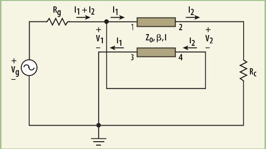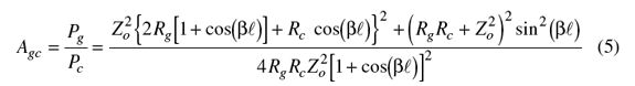 這里:Rg=源阻抗、Rc=負載阻抗、Zo=傳輸線特性阻抗、βl=相位因子、l=kλ=傳輸線長度(這里λ是波長,k是小數(shù)值)。