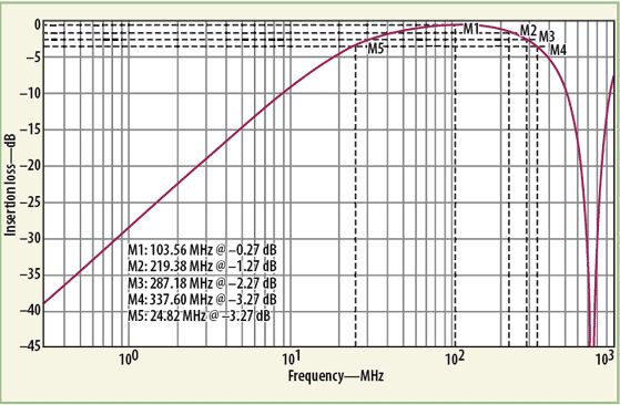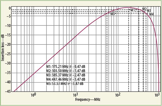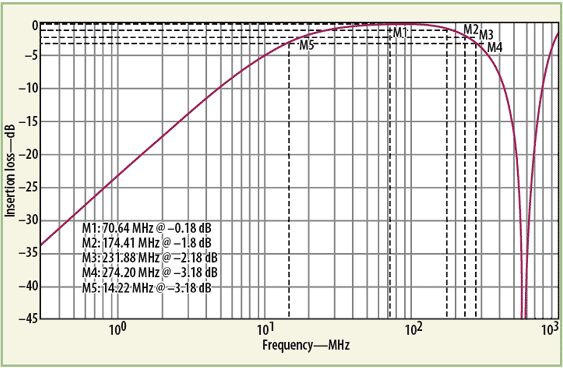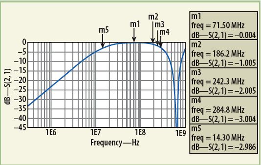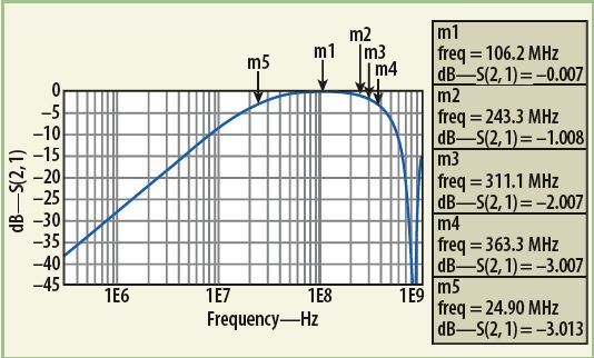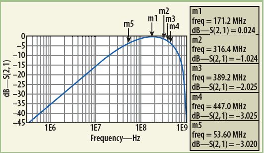 MathWorks的MATLAB數(shù)學分析軟件曾被用來分析這種變壓器器件模型的響應。分析中,把單獨的低頻(公式1)響應和高頻(公式5)響應的插損響應結合在了一起。將所需的目標值代入MATLAB公式,可獲得寬帶變壓器的最終響應。為了執(zhí)行MATLAB模型數(shù)值響應的電氣仿真,使用了ADS建模軟件。該軟件有一個很有用的內部源模型,稱為XFERRUTH,其變量參數(shù)包括匝數(shù)(N)、電感因子(AL)、傳輸線特性阻抗(Z)、傳輸線電氣長度(E),以及計算傳輸線長度所需要的參考頻率(F)。