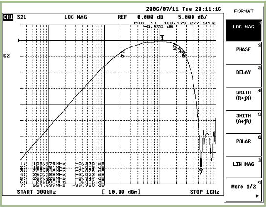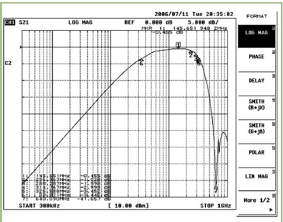 盡管三組結果是由不同的方法求出的,但它們彼此吻合良好。分析(MATLAB)和數(shù)值(ADS)模型獲得的響應與實驗獲得的響應(VNA測量值)比較起來十分接近。利用分析和數(shù)值方法獲得的值近似相等,但與實驗結果相比有少許差異。最好的解釋是,理論模型沒有把變壓器結構中所采用的各元件的復雜特性完全考慮在內,而是按照幾乎“理想”的元件來建模的。