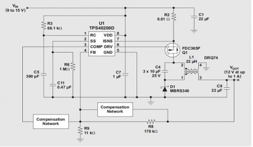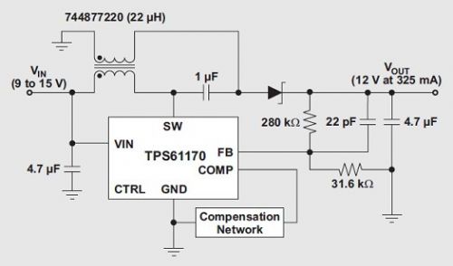 盡管DC/DC單端初級(jí)電感轉(zhuǎn)換器 (SEPIC) 拓?fù)洳皇鞘裁葱聳|西,但的確直到最近它才開始流行起來,然而,對(duì)于能夠?qū)Ω叩洼斎腚妷褐g的輸出電壓(例如:12V未校準(zhǔn)插墻式電源)進(jìn)行調(diào)節(jié)的轉(zhuǎn)換器需求一直都存在。雖然我們可以將任何升壓轉(zhuǎn)換器/控制器配置為一個(gè) SEPIC,但其在最近才得到普遍的使用。兩個(gè)因素促進(jìn)了 SEPIC 的人氣大增:(1) IC 制造廠商已經(jīng)開始制造更多具有電流模式控制功能的升壓控制器,旨在簡化補(bǔ)償;(2) 電感制造廠商已經(jīng)開始制造許多可以最小化轉(zhuǎn)換器總 PCB 體積的單封裝耦合電感。改用耦合電感以后,許多具有兩個(gè)單獨(dú)電感應(yīng)用的電源體積可以縮減三分之一。圖 1 顯示了使用TITPS61170 和Wuerth 744877220 的一個(gè)SEPIC。