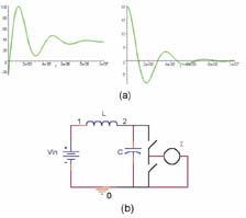 圖3 描述典型漏極寄生電感中的振蕩電流和電壓。注意在下一個(gè)開關(guān)周期開始之前電流和電壓波形趨向于零。儲(chǔ)存在電感器中的能量被轉(zhuǎn)換為相關(guān)寄生電阻的熱量。