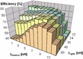圖6所示效率是指不同頻率下負(fù)載電流和漏極電感的函數(shù)。此外,可觀察到如下結(jié)果: