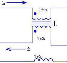 圖1所示的是共模電感的濾波電路,Tr2a和Tr2b就是共模電感L的兩個線圈。這兩個線圈繞在同一磁芯上,匝數(shù)和相位都相同。這樣,當(dāng)電路中流過電流ia和ib的大小相同、方向相反時,電流在同相位繞制的電感線圈中產(chǎn)生反向的磁場而相互抵消,磁芯中沒有交變的磁通量產(chǎn)生。