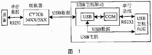 主機必須能夠通過設備驅動接收USB數(shù)據,并且使這些數(shù)據對處理這些請求的應用程序有效。在主機中必須有一個驅動負責處理USB傳輸、辨識設備、向USB設備收發(fā)數(shù)據;同時,還需要有一個設備驅動-虛擬化串行口,仿效真實的串口。這個驅動必須能夠像真實的串口接收和發(fā)送USB數(shù)據。