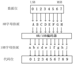 在串行鏈路通信中,為了實現(xiàn)信號時鐘的恢復,需要避免出現(xiàn)長串0和長串1,同時保持電路上正負電平平衡,能正確地交流耦合避免信號失真,需要傳輸信號中的0和1數量數目相等,因此業(yè)界廣泛應用8B/10B編解碼方法:實現(xiàn)8B到10B的映射(圖4),即一個字節(jié)(8bits)用10bits來表示,從中挑選出連續(xù)0或者1個數不會超過3個,0和1的個數差不大于2 (最多6個’0’或’1’)。