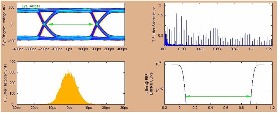 圖10 1228.8Mbps發(fā)送側眼圖(經5inches FR4走線,調整了最優(yōu)的去加重補償)