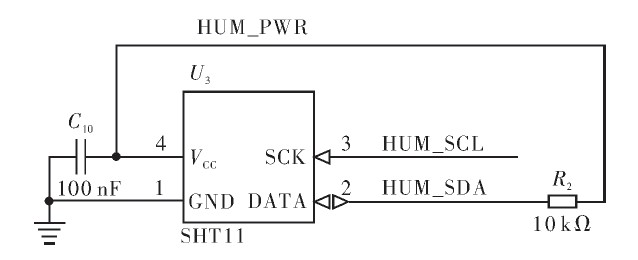 SHT11電源供電要求為2.4~5.5V,電源和時鐘信號均由微處理器提供,數據線管腳三態(tài)輸出,因此需要外界一個上拉電阻將信號拉高。