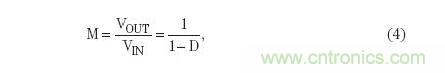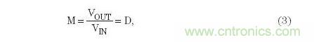 CCM模式下的反向降壓-升壓轉換器的電壓轉換率可表示為: