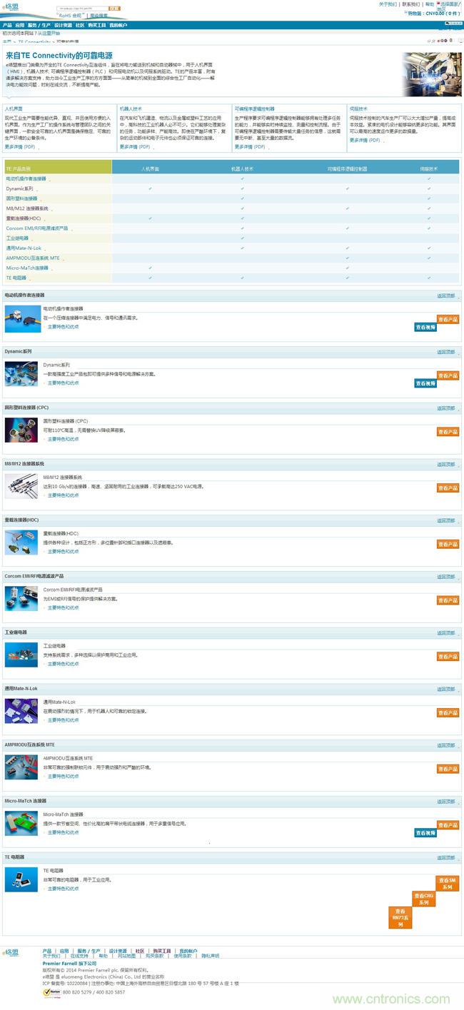 e絡(luò)盟子站還為客戶提供一款產(chǎn)品導(dǎo)航器,使他們能夠根據(jù)各自的獨特設(shè)計需求和應(yīng)用難點快速購得所需的特定系列TE產(chǎn)品,如Dynamic系列、M8/M12連接器系統(tǒng)、重載連接器、工業(yè)繼電器及AMPMODU MTE連接器等。
