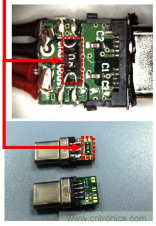 圖4:采用P-TCO的USB Type-C過溫保護(hù)實例,紅色矩形標(biāo)注處為P-TCO
