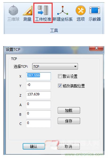 工具的TCP進(jìn)行設(shè)置,完成此步驟后零件和工具的位置就已經(jīng)和實(shí)際的位置保持一致了。
