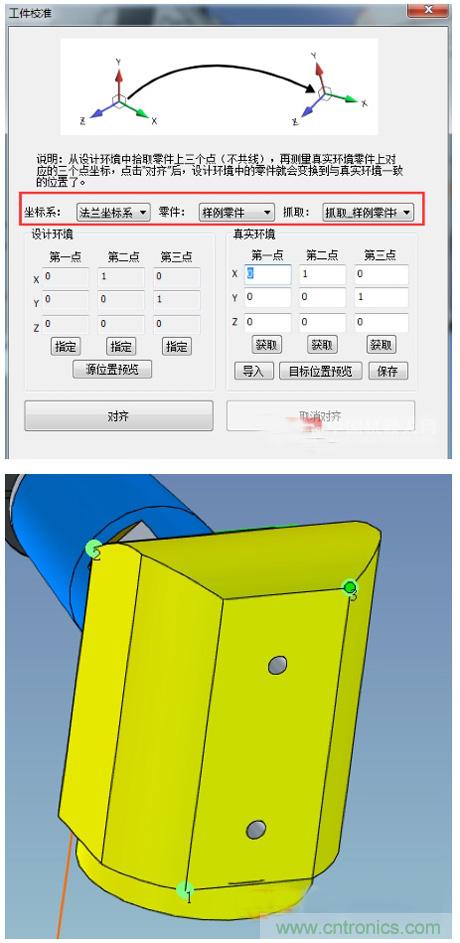 然后,我們對零件的三維模型進(jìn)行工件校準(zhǔn)以及對
