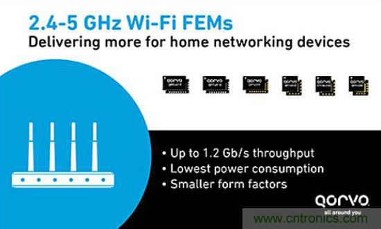 【導(dǎo)讀】Qorvo, Inc.今天宣布,引進新的5 GHz和2.4 GHz Wi-Fi前端模塊(FEM)系列,為更小、更節(jié)能的無線路由器、網(wǎng)關(guān)和其他家居聯(lián)網(wǎng)設(shè)備鋪平道路。七款新的FEM支持高帶寬輸出,兼顧低功耗、小尺寸和最大可靠覆蓋范圍。