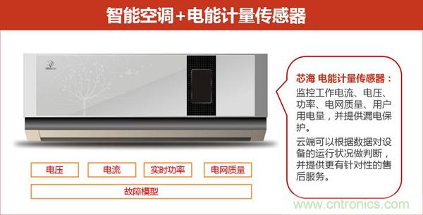 “比如智能空調(diào)”,王偉表示,“由芯??萍纪瞥龅碾娔苡嬃?a target="_blank" style="text-decoration:none;" >傳感器,不僅可以監(jiān)測用電量,幫助用戶實現(xiàn)家庭能源管理,還可以實時監(jiān)測設(shè)備的電壓、電流、功率及區(qū)域電網(wǎng)質(zhì)量,搭配我們與客戶共同研發(fā)的故障模型,從而完成對空調(diào)故障、制冷、漏水、固件損壞的預(yù)判,針對性為用戶提供售后服務(wù)。”