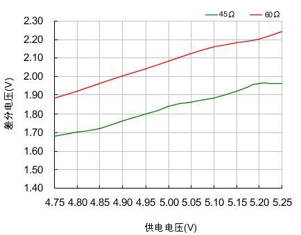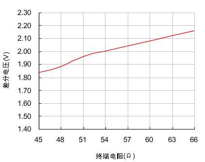 差分電壓除負(fù)載電阻的影響外,還會(huì)受到供電電壓的影響,如圖 2我們測(cè)試了CTM1051M模塊在不同電壓,不同負(fù)載下的差分電壓幅值,可以看到電源電壓升高0.5V,差分電壓幅值會(huì)升高約0.3V。