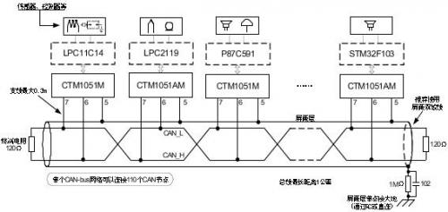 無(wú)論總線網(wǎng)絡(luò)長(zhǎng)短,網(wǎng)絡(luò)兩端都需要加終端電阻; 通訊距離長(zhǎng)時(shí),適當(dāng)增加終端電阻值,減少總線電阻對(duì)信號(hào)的衰減,如150Ω~300Ω; 有強(qiáng)烈干擾的場(chǎng)合使用屏蔽雙絞線,屏蔽層單點(diǎn)接大地; 收發(fā)器CAN接口輸出的差分電平會(huì)隨著供電電壓的變化而變化,應(yīng)確保供電電壓在手冊(cè)規(guī)定范圍內(nèi)。