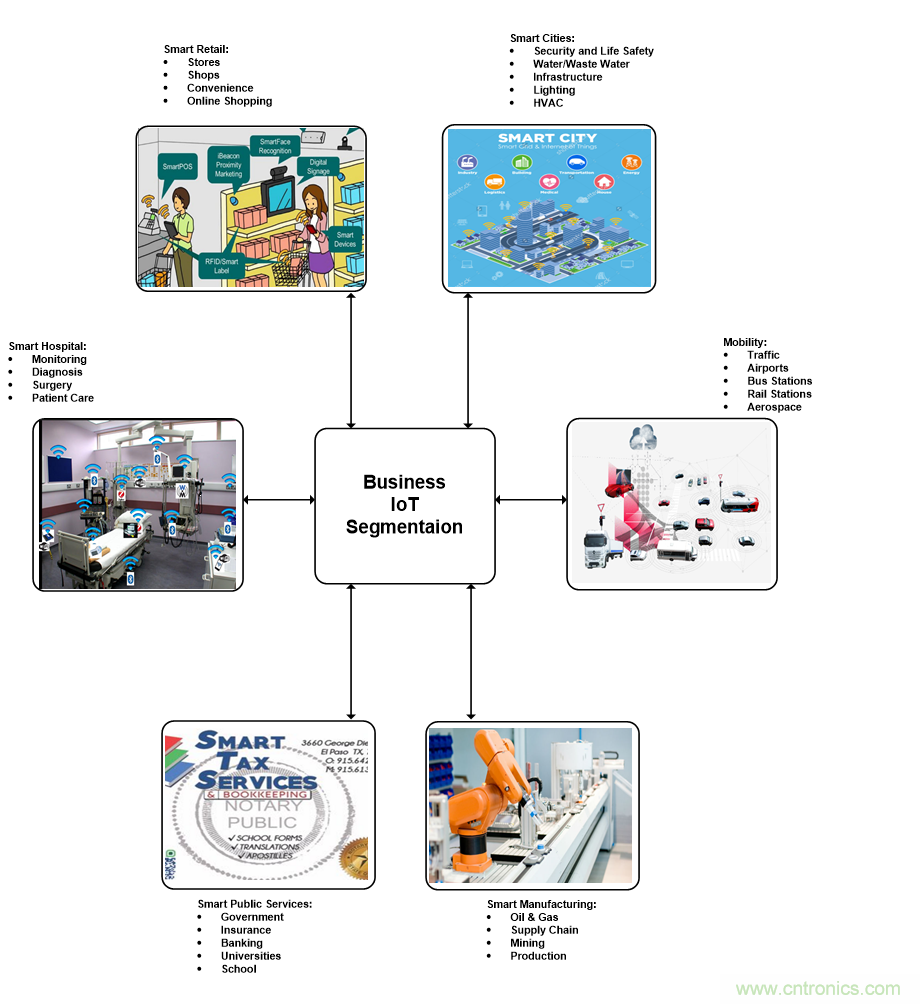 企業(yè)物聯(lián)網(wǎng)的覆蓋范圍巨大,包括零售、醫(yī)療、能源、出行、城市、制造業(yè)和公共服務(wù)。企業(yè)物聯(lián)網(wǎng)細(xì)分市場(chǎng)會(huì)改變組織和社區(qū),從而創(chuàng)造一個(gè)實(shí)現(xiàn)經(jīng)濟(jì)增長(zhǎng)的新時(shí)代。物聯(lián)網(wǎng)通過連接數(shù)據(jù)、人員和機(jī)器來(lái)提高生產(chǎn)力、生產(chǎn)效率以及日常運(yùn)營(yíng)水平。企業(yè)物聯(lián)網(wǎng)也可以作為幫助企業(yè)識(shí)別未開發(fā)領(lǐng)域新增長(zhǎng)機(jī)會(huì)的工具。